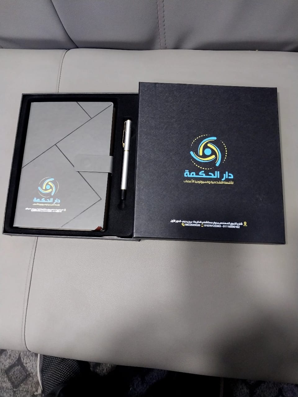 GIFTS SET طقم هدايا مجمعه بلوك نوت ومج وميداليه وكارت داخل بوكس ابيض مطبوع